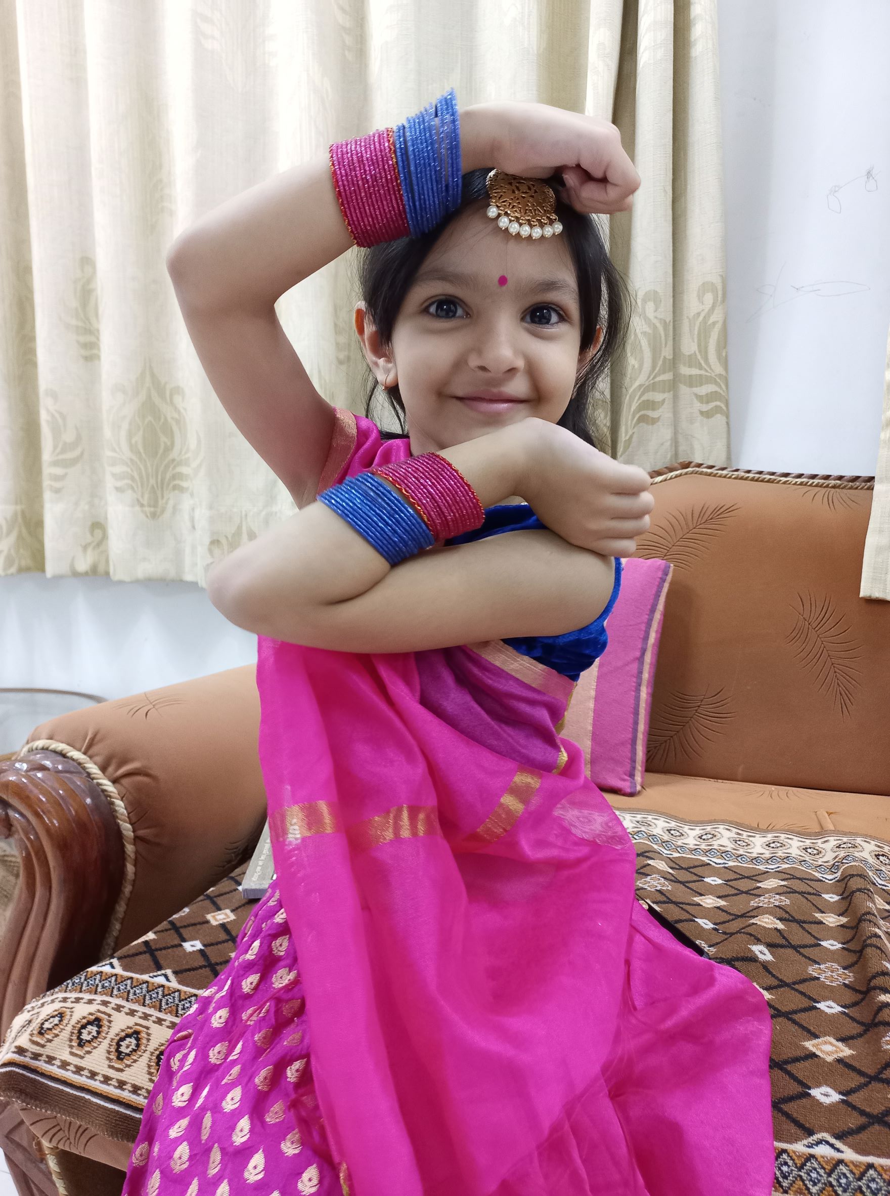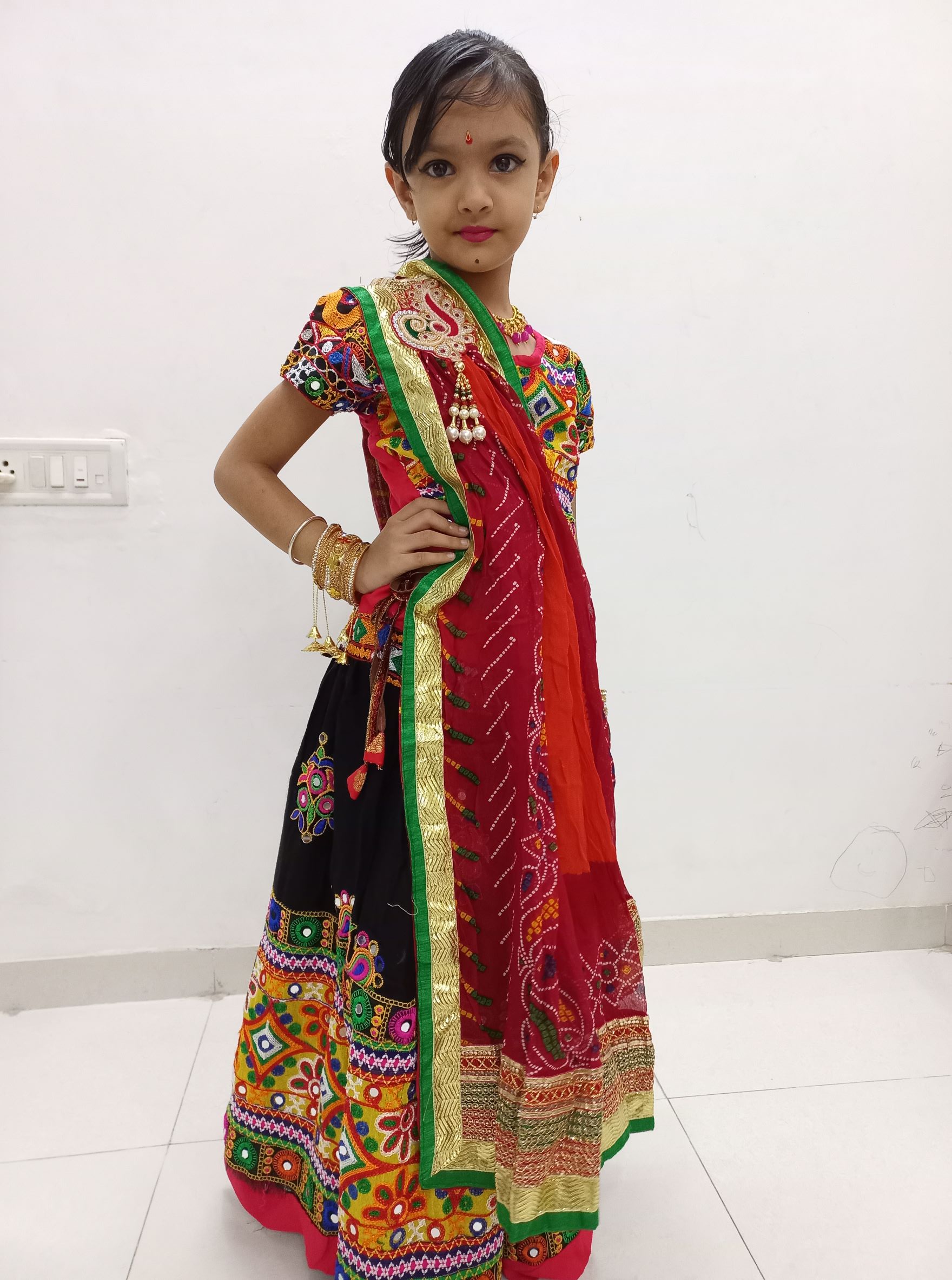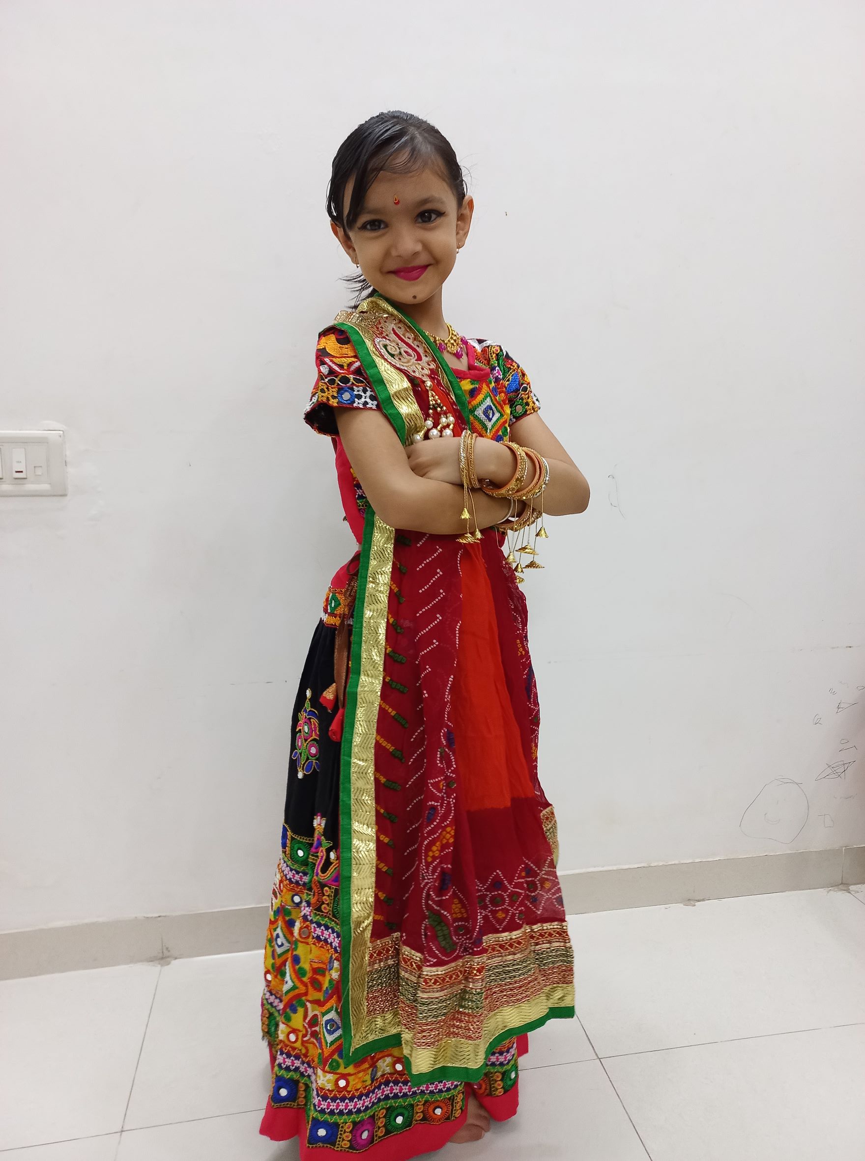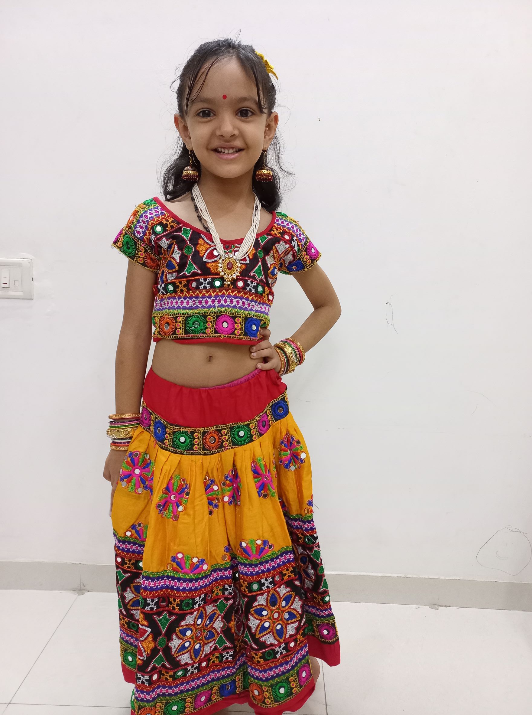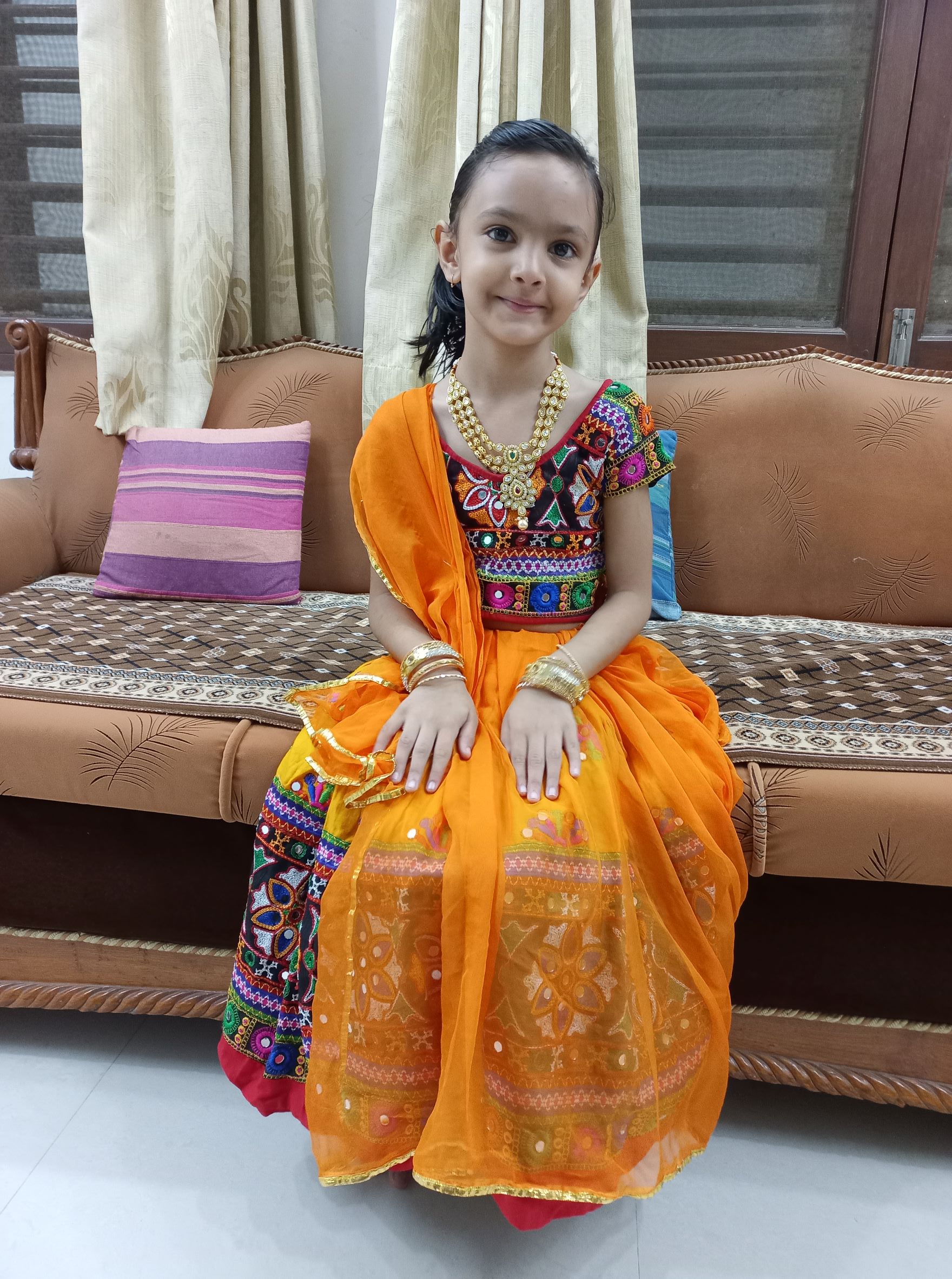Our daughter Vritima enjoys all these festivities. In fact, we were in Gujarat during Navaratri/Dussehra festival. And every single day, she enjoyed dressing up in full traditional attire, staying awake beyond midnight and enjoyed the Garba to the fullest. She had so much fun with family and her newfound friends that she did not even want to come back to Bangalore. Here are some glimpses from Vritima’s Navaratri 2022 – typical desi Gujarat style.