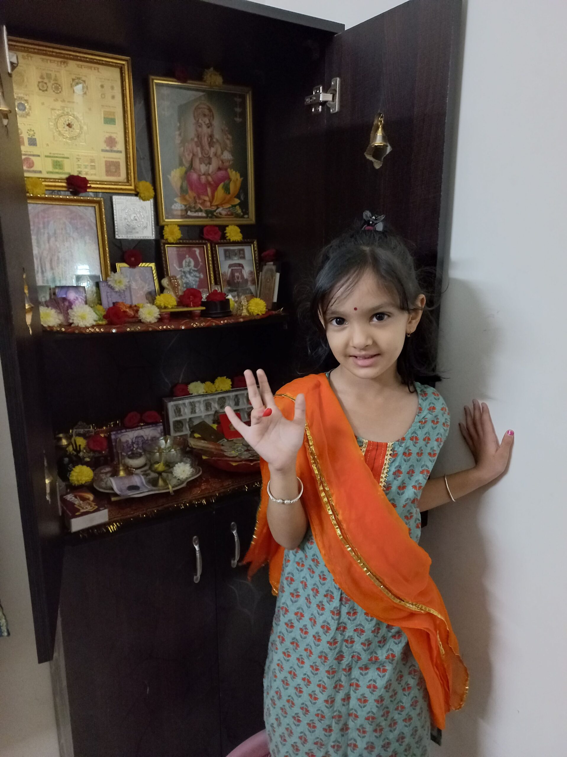 Next day on Gujarati New Year, even though not physically, we still wished traditional ‘Saal Mubarak’ to family & relatives virtually with video calling. Vritima took blessings from grandparents and all other elders, of course, minus the pocket money that we used to get in our childhood. One more disadvantage of the changed times that the next generation will have to face.