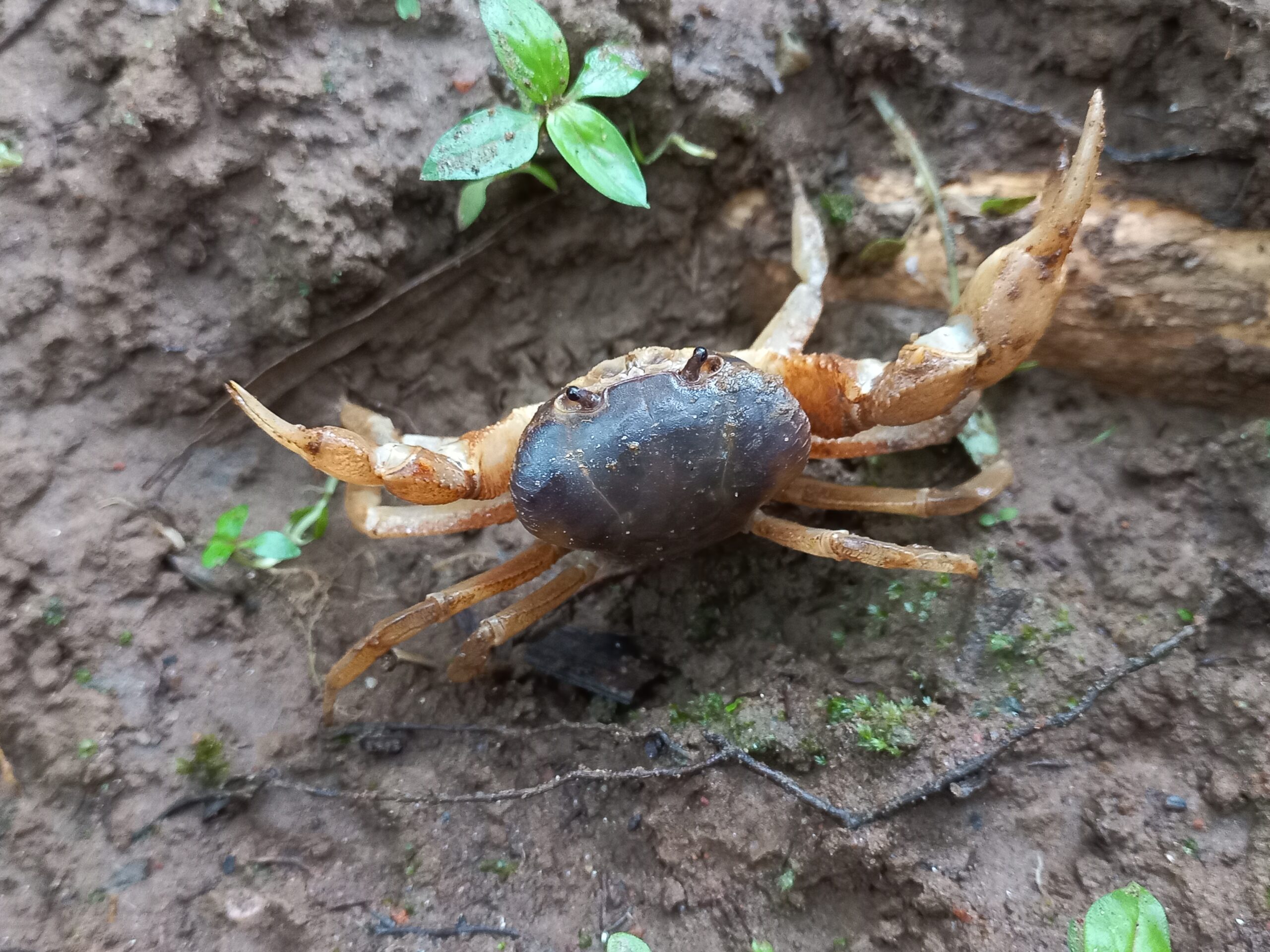 Next day, Vritima was up even before us, we were too lazy to wake up so early with cool weather and light drizzle outside. But Vritima was in no mood to let us sleep, she jumped on us, tickling and shouting to wake us up. In no time, she was already out of the cottage continuing her quest for other bugs, insects and animals. Her keen eyes spotted some Centipedes, Snails, Beetles, freshwater crab and even some fishes in the river stream. She had hundreds of questions for every little bug & insect she found. We happily answered them. A little dose of General Knowledge is always good.