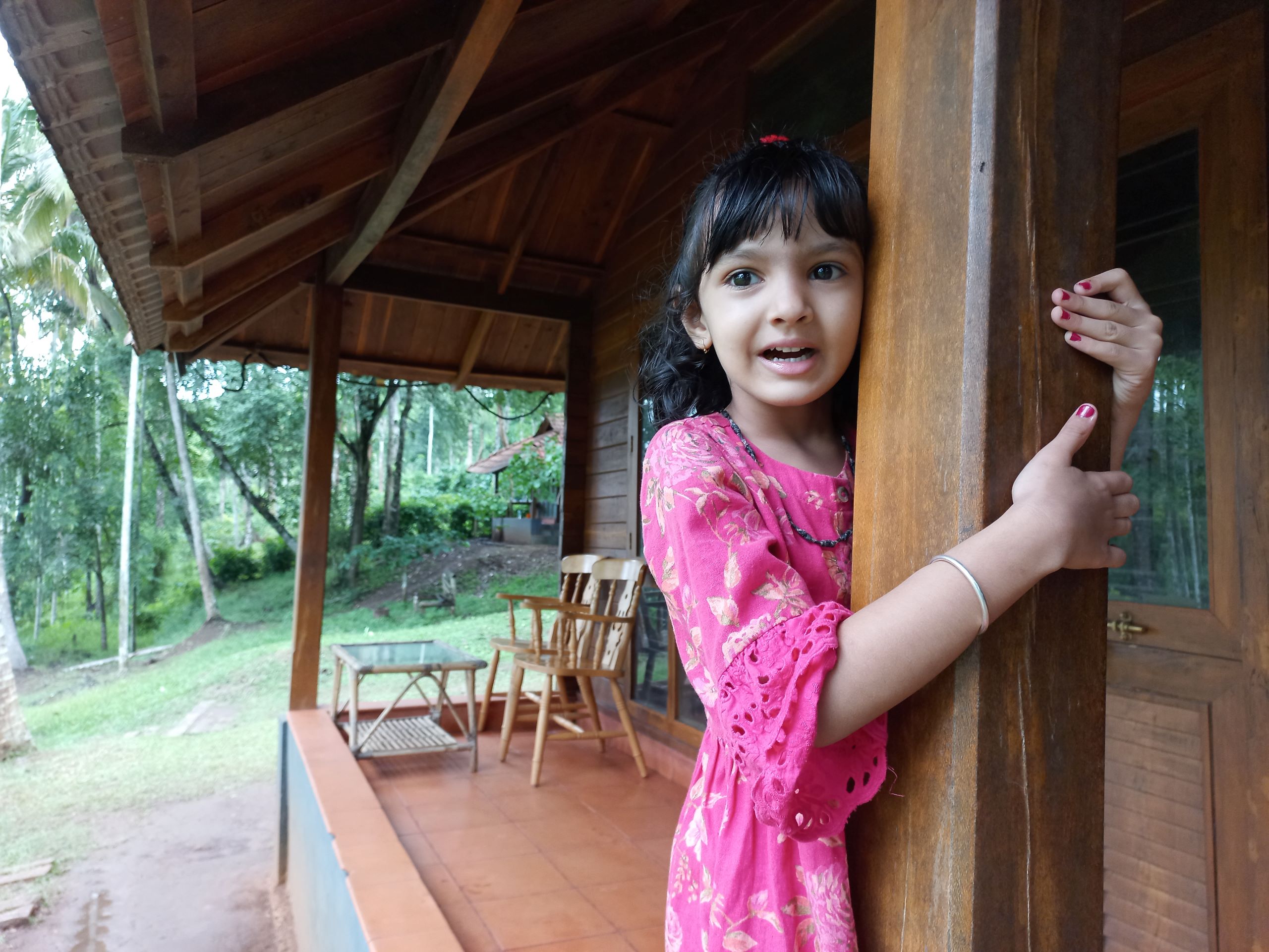 Cocoon Royale may not be as luxurious as other resorts. However, it has decently maintained cottages on the banks of river Kabini, perfect for peaceful, leisure time with not many activities. This place was a new experience for Vritima as there was no play area or activities like Orchid’s Trail resort. However, she immediately found ways to keep her engaged. She walked around the cottages, spotting monkeys in the trees, curiously observing the burrows made by frogs etc.
